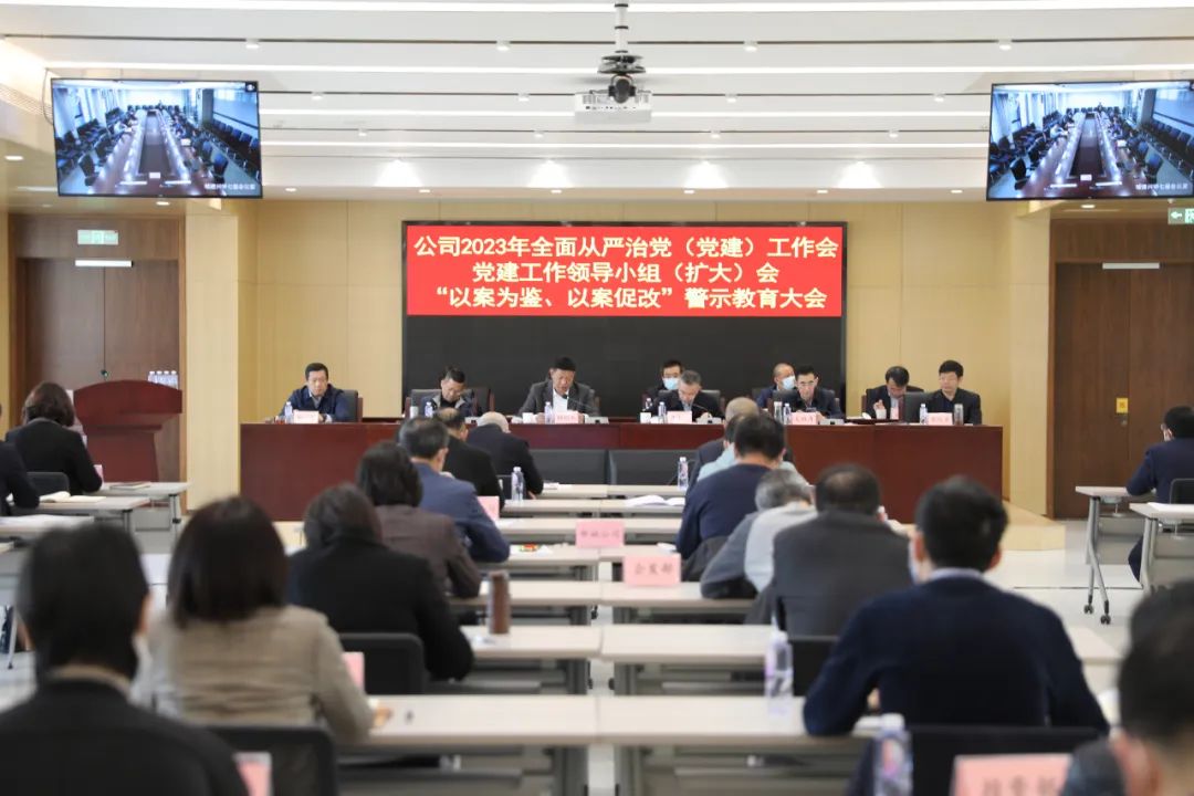 公司党建工作领导小组(扩大)会、2023年全面从严治党(党建)工作会暨“以案为鉴、以案促改”警示教育大会由集团公司党委常委、公司党委副书记、董事长、总经理储昭武主持。会上,公司纪委书记毛雅清传达了市纪委十三届二次全会、市国资委警示教育大会、集团公司全面从严治党工作会暨警示教育大会精神,部署了2023年公司纪检重点工作。公司党委副书记、工会主席程丰通报了2022年度公司党委全面从严治党(党建)工作考核情况。与会人员集体观看了警示教育片《铁纪之威》。